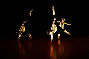 Dwarf Star Andrea Larreta and Mary Kirkpatrick balance while Astre Kay dances in the background.